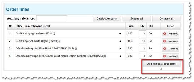 Note: If you want to add more non-catalogue items to your order, use the blank fields beneath and repeat the above process. Click on the Add new line button if you need to add more than just a couple of items.